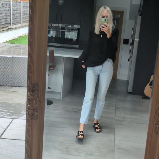 The Black Fisherman's Knit Jumper is designed in a versatile one-size fit, comfortably accommodating sizes 8 to 16. Expertly crafted with traditional cable-knit detailing, this jumper provides warmth and breathability, making it an ideal layering piece. Its adaptable sizing ensures a flattering fit, offering both style and practicality for a range of body types.