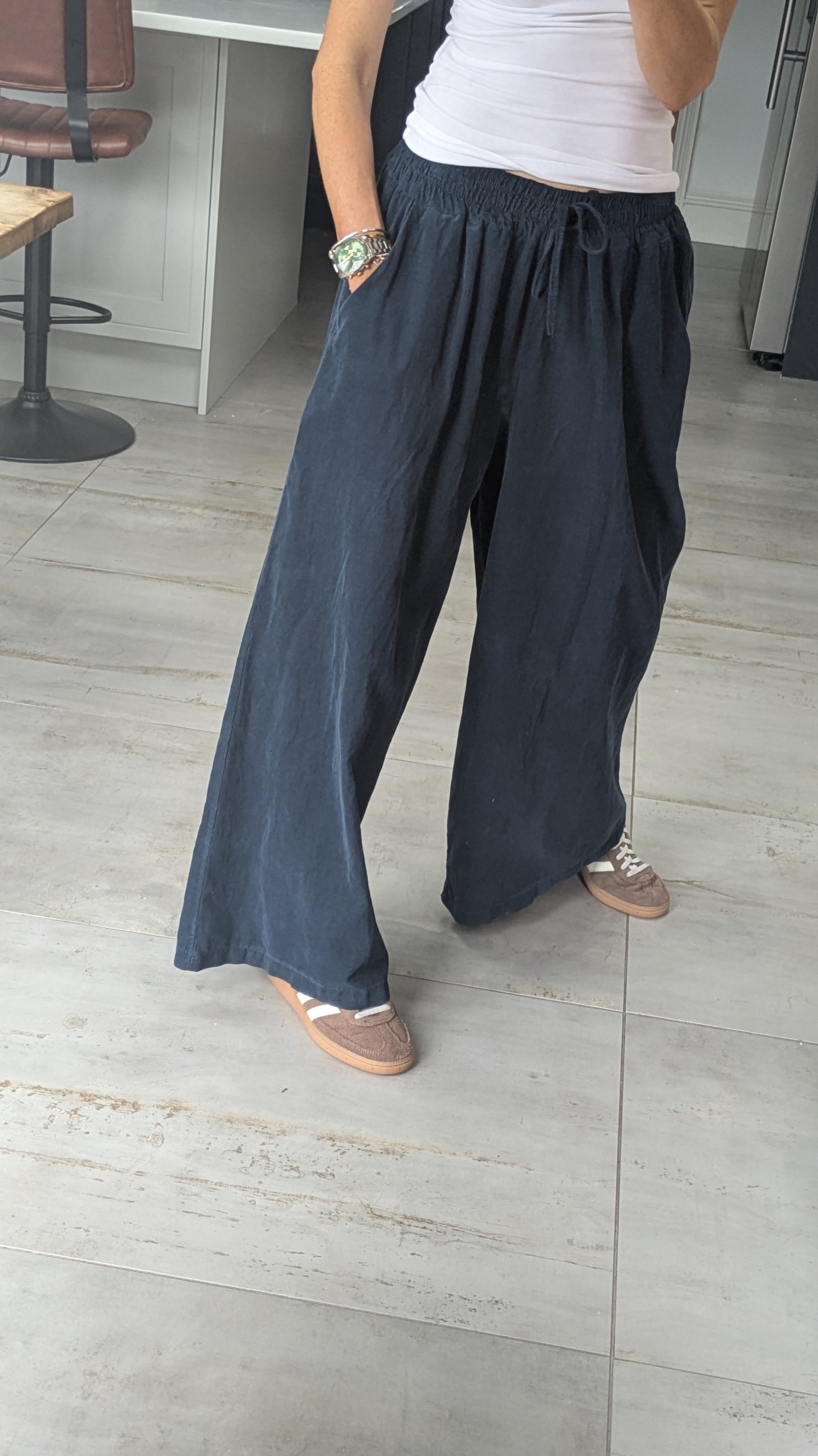 Drawstring Cord Trousers - Navy